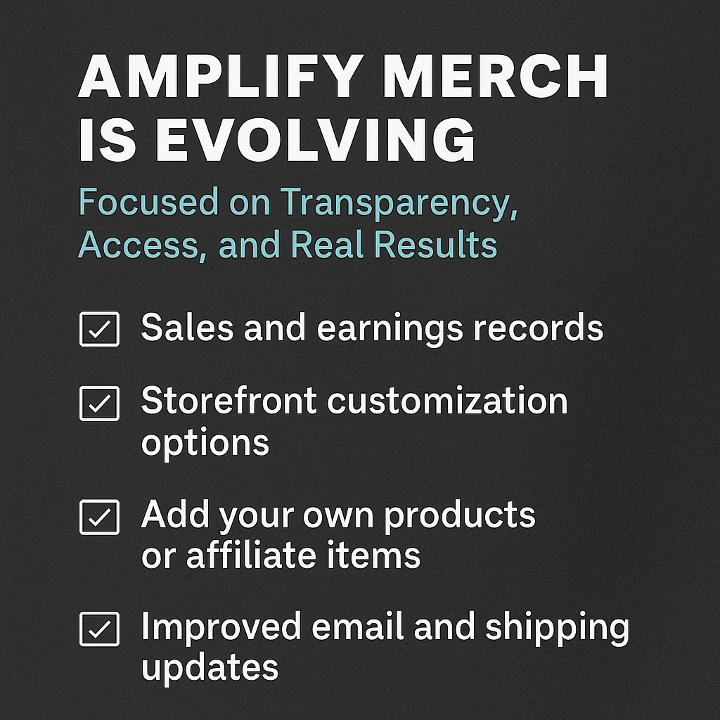 Amplify Merch is rolling out a new and improved vendor storefront system—built around trust, access, and transparency.
