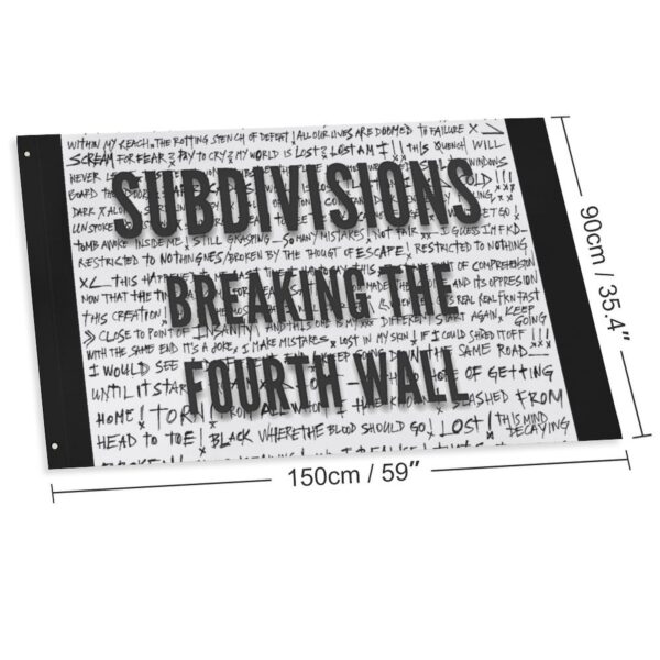 Printed with Subdivisions’ distinctive style, this flag turns heads at shows, festivals, home studios, or anywhere you hang it.