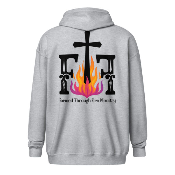 Carry the message of Formed Through Fire Ministry with you wherever you go. Designed for both style and comfort, this Heavy Blend Zip Hoodie is more than just apparel — it’s a statement of faith, resilience, and community. With its soft fleece interior and exterior, sturdy metal zipper, and color-matched drawstrings, it’s built to be your go-to layer for everyday wear, while also serving as a reminder of the mission you’re a part of.