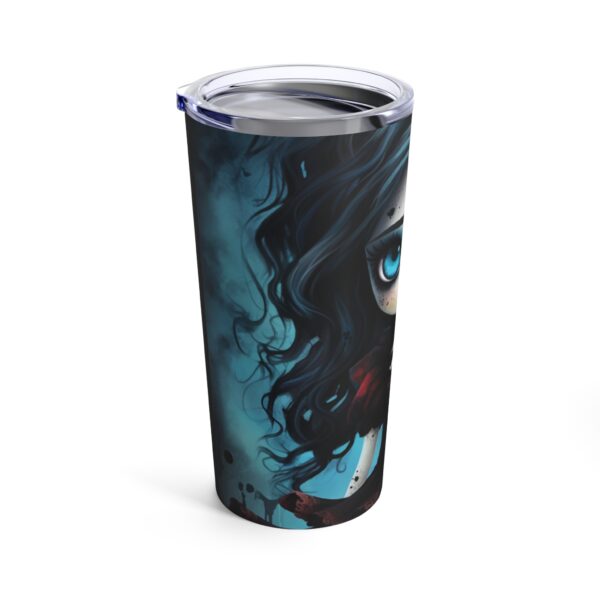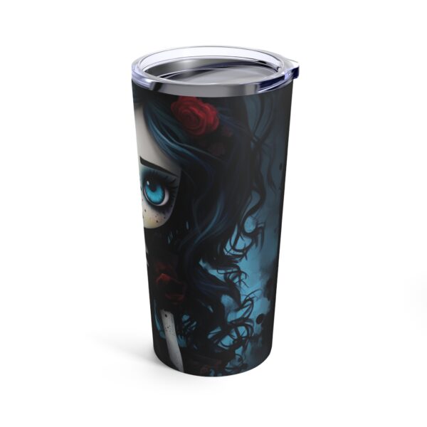 This Gothic Doll tumbler is an excellent choice for daily use to keep 20oz of your favorite beverages hot or cold thanks to the double-wall insulation. Meanwhile, the stainless steel construction provides excellent durability and it’s dishwasher safe for added convenience.