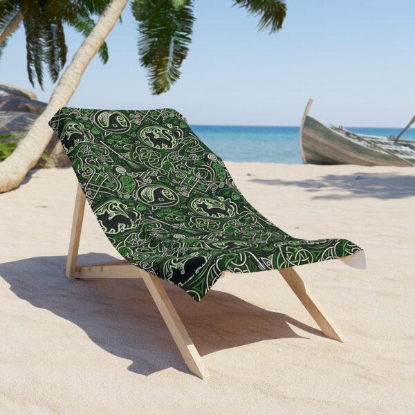 This plush witch-themed beach towel has a polyester front for vibrant prints and a cotton loop back for durability. Due to the towel’s thickness, print colors may not fully soak through, resulting in a white backing.