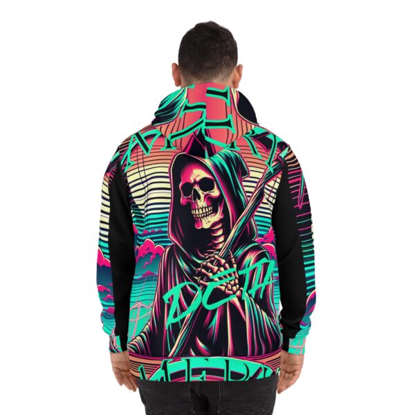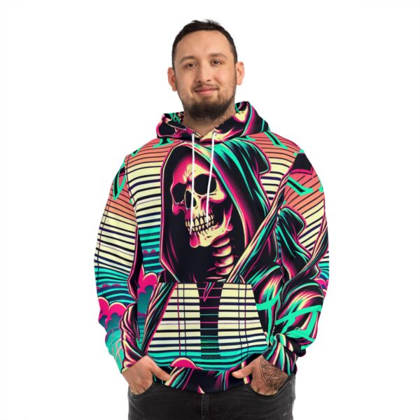 Our all-over-print hoodies are unisex, made with 75% polyester, 20% cotton, and 5% spandex – resulting in an extra cozy feeling that lasts all day long.