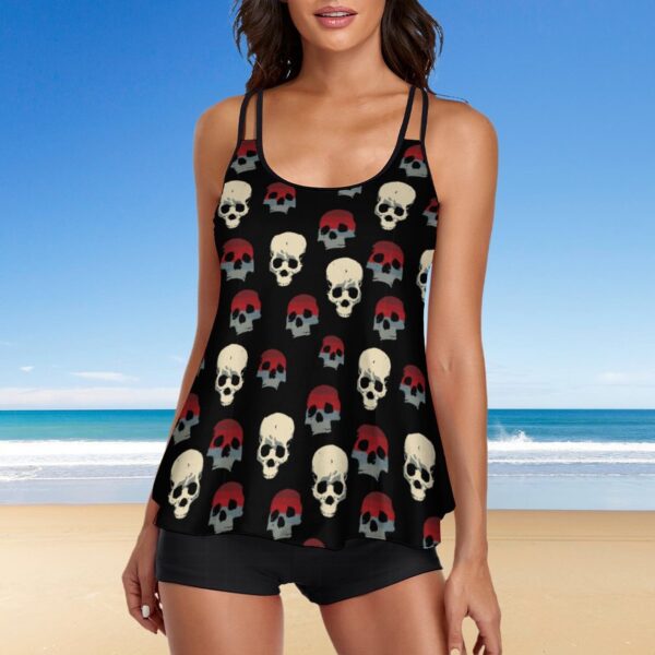 Amplify Merch Exclusive: Red Skulls Tankini Two Piece Swimsuit